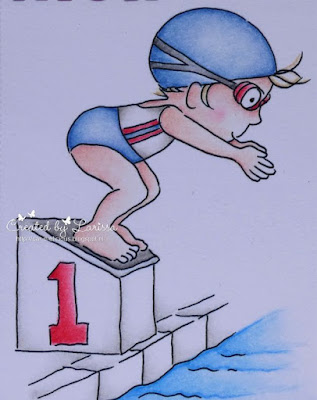 ReplyDeleteBeautiful coloring of the image and the design is awesome. This is so clean it really captures the essence of a natatorium! Thanks so much for sharing your awesome card with us at A Place to Start!